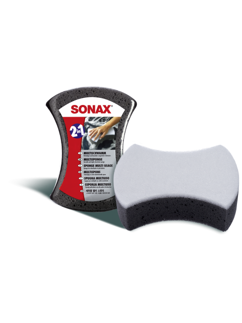 Avec deux surfaces d'application différentes. Le côté gris a la structure plus douce et est fait pour le nettoyage général du véhicule. Le côté blanc a une surface rugueuse et est idéal pour éliminer les saletés plus tenaces.